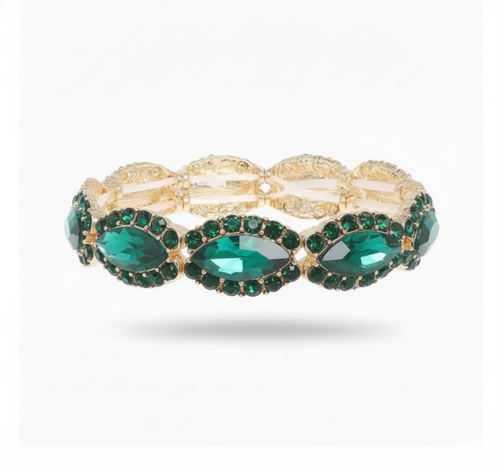 マーキスカットの天然エメラルドが輝くK18ブレスレット。華やかで気品ある存在感を放ちます。