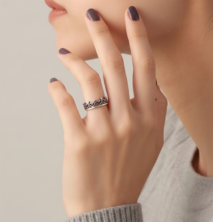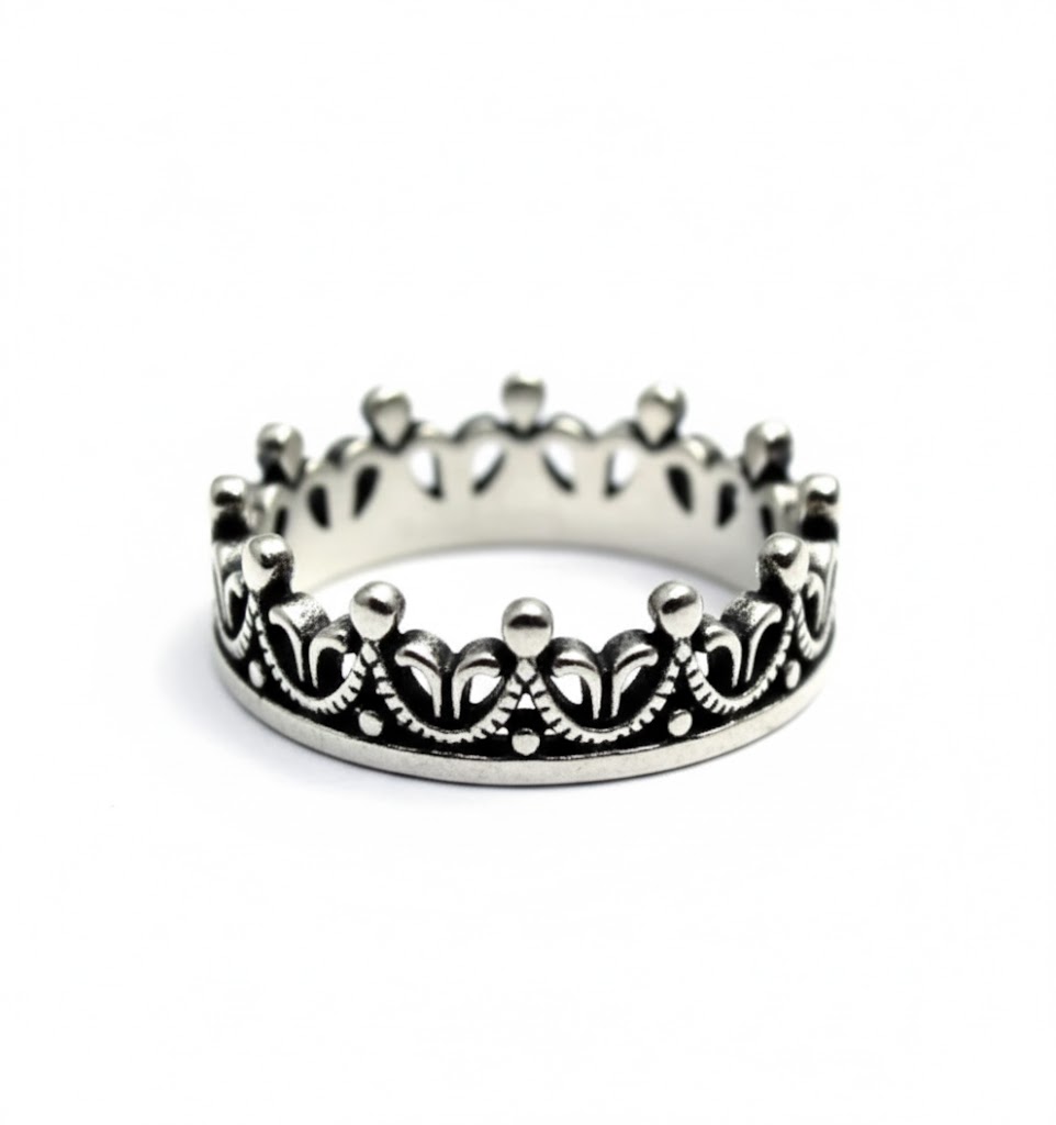 王冠をイメージした立体的なデザインが印象的なクラウンリング。重厚感あるフォルムをプラチナ950で仕上げ、細部まで丁寧に施されたミルグレインが気品を添えます。マットと鏡面のコントラストが高級感を演出し、男女問わず愛用できるデザイン。伝統的なクラウンモチーフは「守護」「品格」「永遠の愛」の象徴とされ、ギフトとしても人気の高いアイテムです。