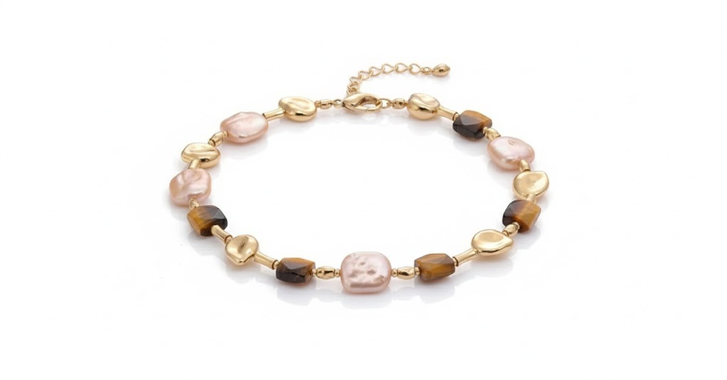 バロックパールとタイガーアイが織りなす、上品で温かみのあるK18ゴールドネックレス