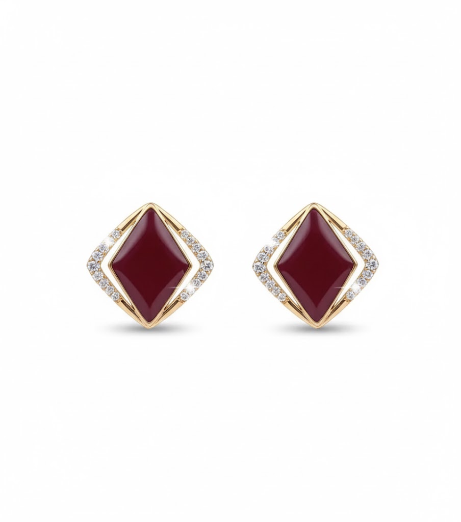 深紅のレッドガーネットを中央に据え、周囲をメレダイヤで囲んだクラシックなクッションフォルムのピアス。K18イエローゴールドの温かみとガーネットの情熱的な輝きが調和し、上品かつ印象的なデザインに仕上がっています。鮮やかな色彩と立体的なカットが光を捉えて輝き、装いにラグジュアリーなアクセントを添えます。ガーネットは「愛」と「情熱」を象徴し、大切な日のギフトにも最適です。